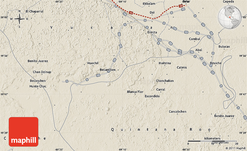Sure, this shaded relief map is nice. But there is good chance you will like other map styles even more. Select another style in the above table. See Chan Dzinup and Yucatan from a different view.