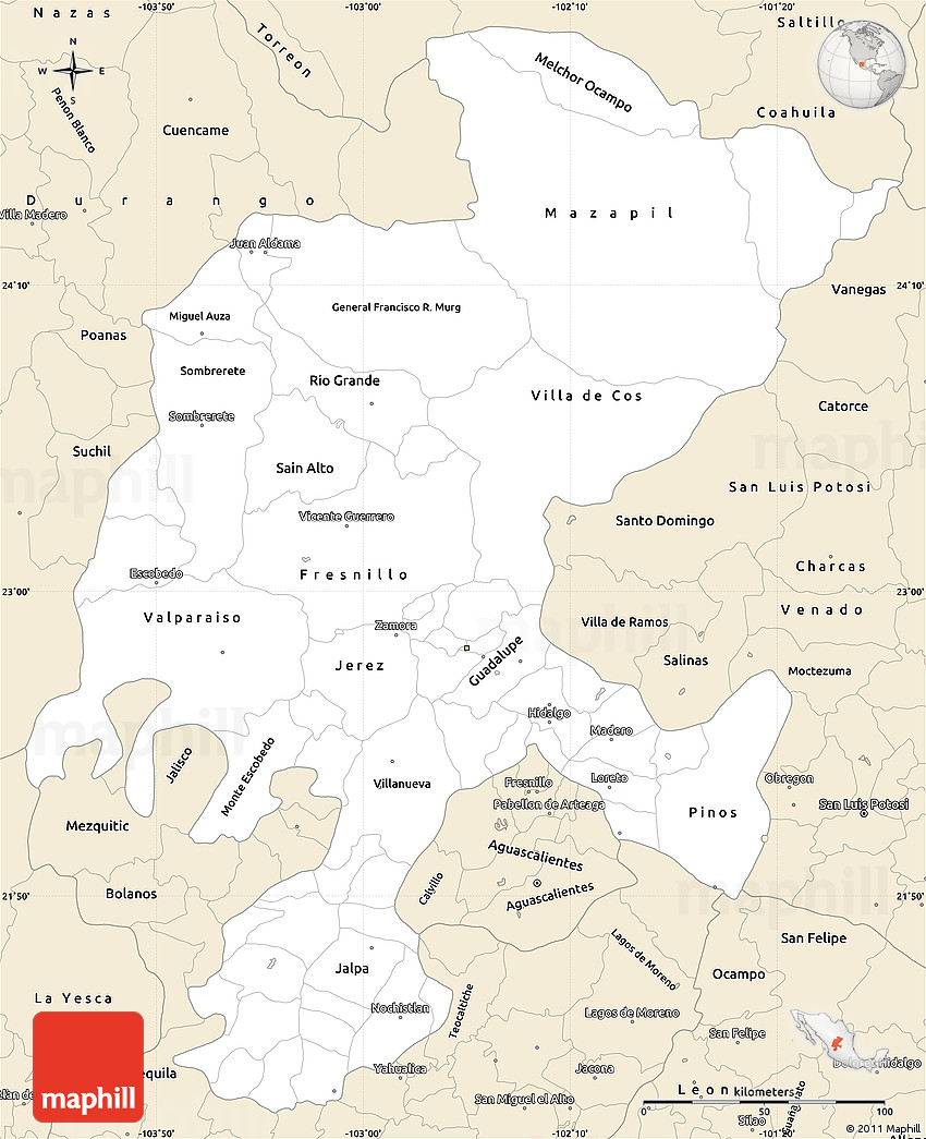 Maphill is a collection of map graphics. This simple outline map of Zacatecas is one of these images. Use the buttons under the image to switch to more comprehensive and detailed map types.
