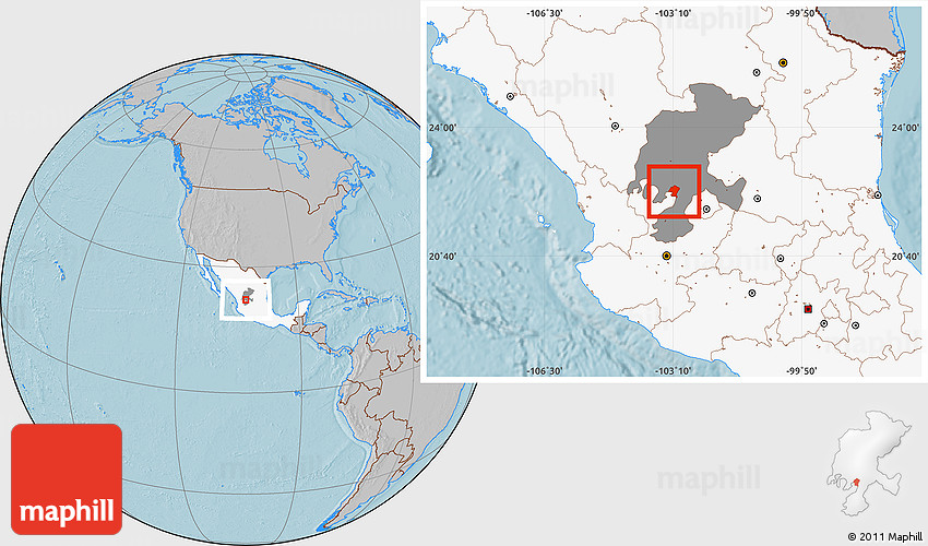 Maphill is a collection of map images. This image combines a gray map with the globe centered on Tepetongo. Use the buttons under the image to switch to different map types.