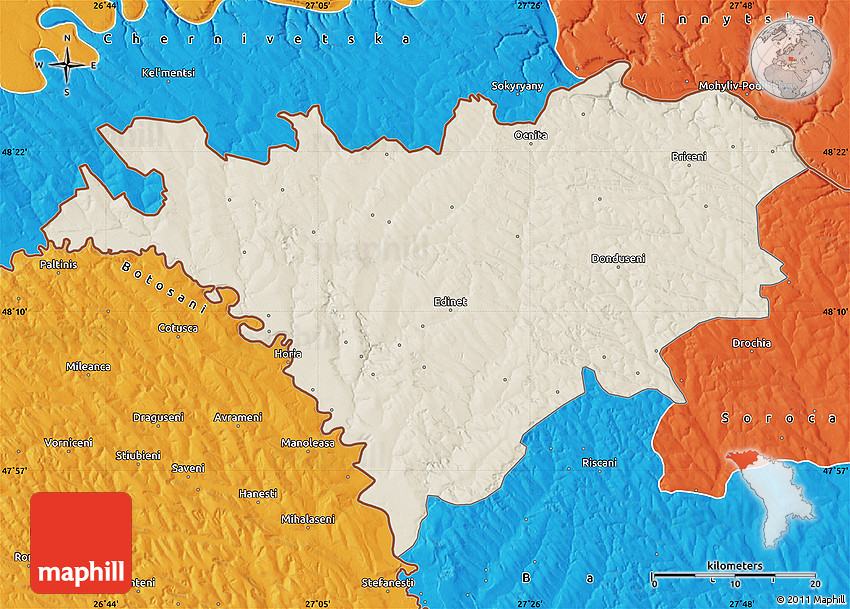 Maphill is a collection of map images. This shaded relief map of Edinet is one of them. Click on the Detailed button under the image to switch to a more detailed map.