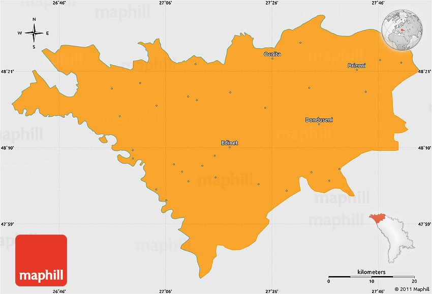Each map type offers different information and each map style is designed for a different purpose. Read about the styles and map projection used in the above map (Political Simple Map of Edinet, single color outside).