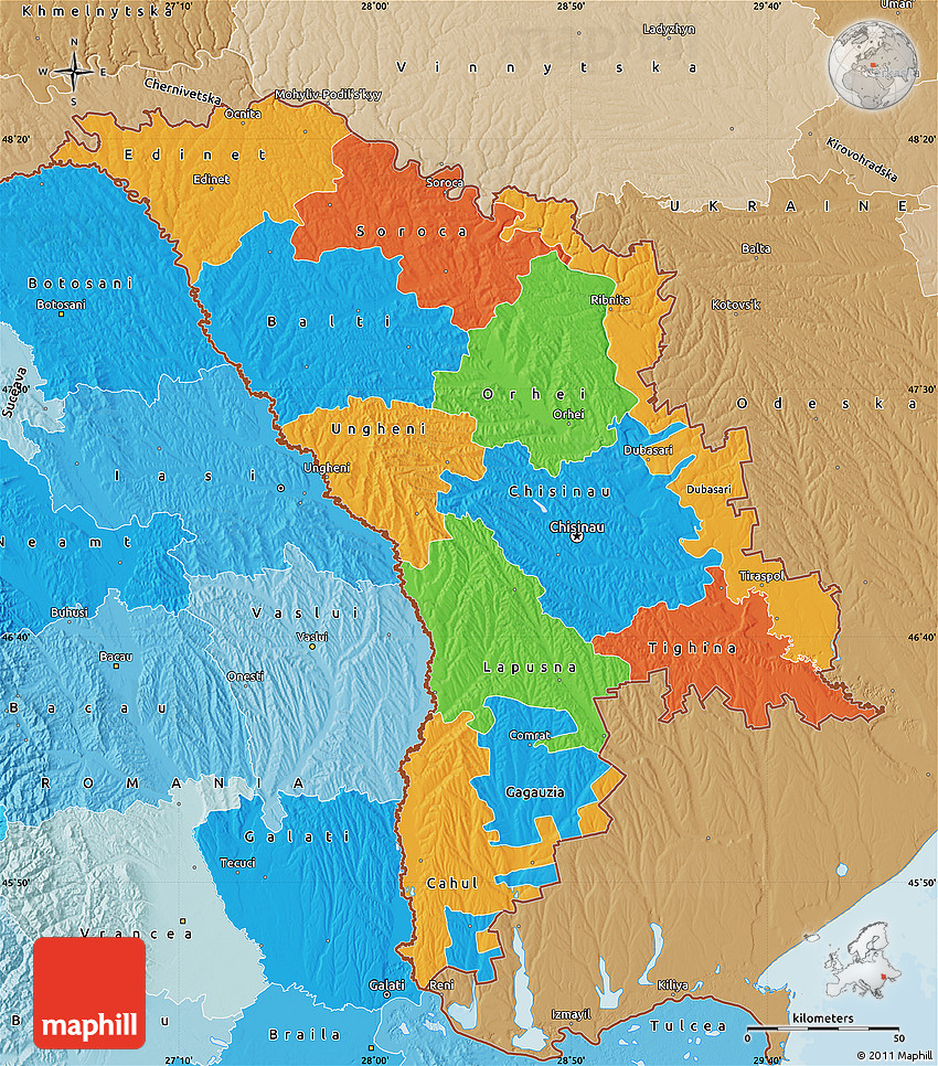 Maphill is a collection of map images. This political map of Moldova is one of them. Click on the Detailed button under the image to switch to a more detailed map.