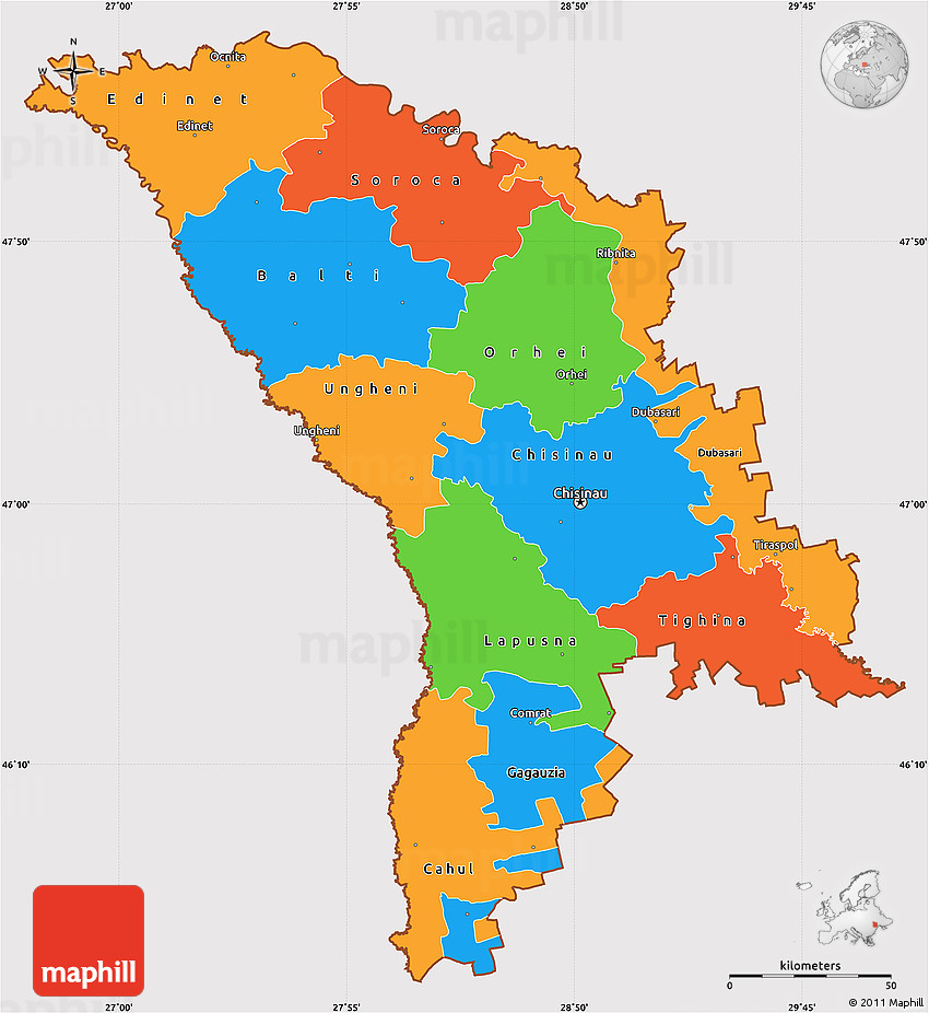 Use the buttons for Facebook, Twitter or Google+ to share a link to this Moldova map. Maphill is the largest map gallery on the web. But the number of maps is certainly not the only reason to visit Maphill.