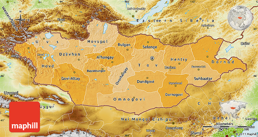 Maphill is a collection of map images. This political shades map of Mongolia is one of them. Click on the Detailed button under the image to switch to a more detailed map.