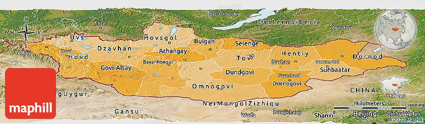 Embed the above political shades panoramic map of Mongolia into your website. Enrich your blog with quality map graphics. Make the web a more beautiful place.
