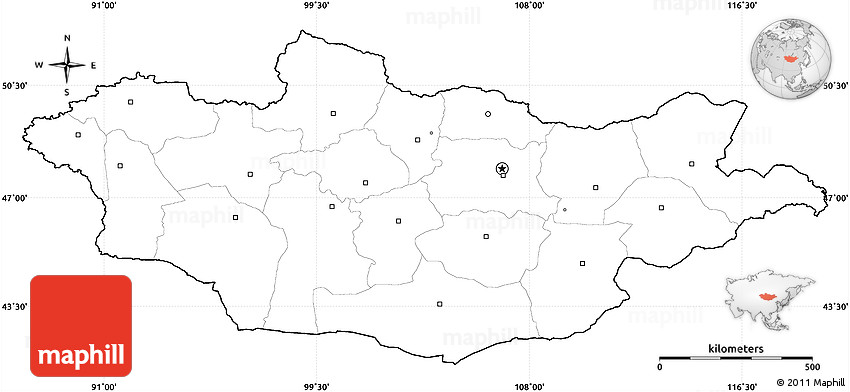 Maphill is a collection of map graphics. This simple outline map of Mongolia is one of these images. Use the buttons under the image to switch to more comprehensive and detailed map types.