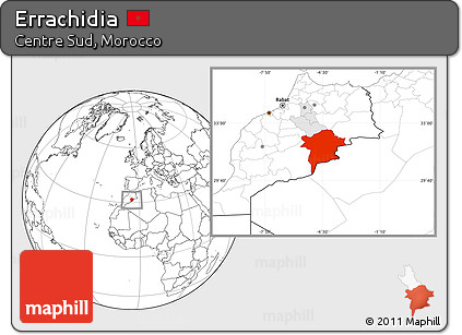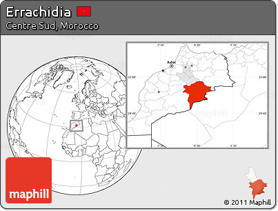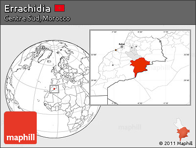 The blank location map represents one of several map types and styles available. Look at Errachidia, Centre Sud, Morocco from different perspectives.