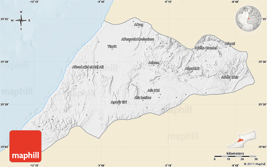 The value of Maphill lies in the possibility to look at the same area from several perspectives. Maphill presents the map of Tiznit in a wide variety of map types and styles.