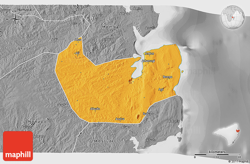 The 3D political map represents one of several map types and styles available. Look at Nacala Velha, Nampula, Mozambique from different perspectives.