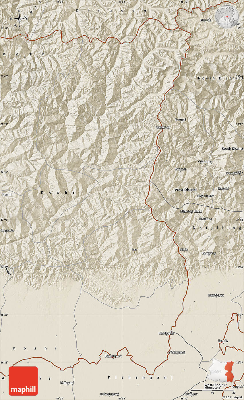 Maphill is a collection of map images. This shaded relief map of Mechi is one of them. Click on the Detailed button under the image to switch to a more detailed map.