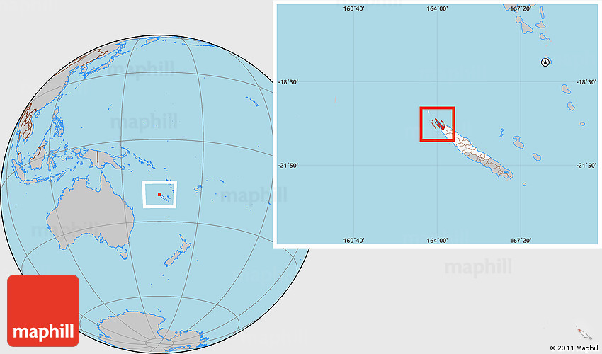 Maphill is a collection of map images. This image combines a gray map with the globe centered on Poum. Use the buttons under the image to switch to different map types.