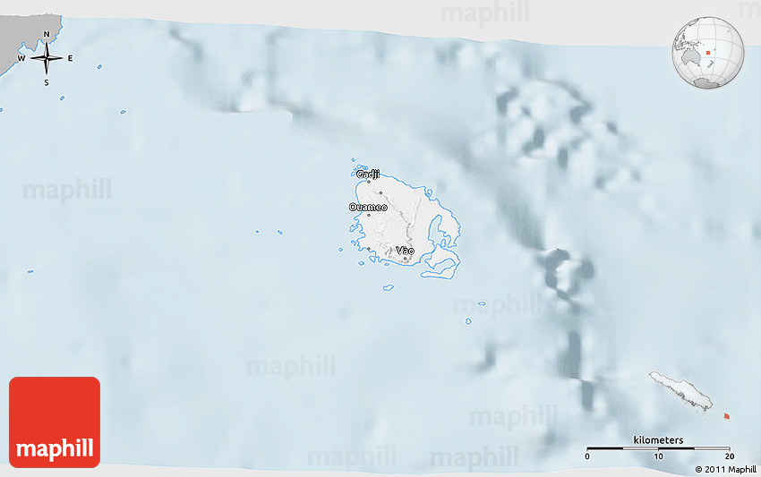 Embed the above gray 3D map of l'Île des Pins into your website. Enrich your blog with quality map graphics. Make the web a more beautiful place.