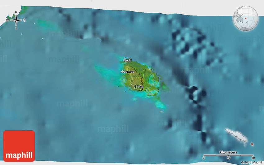 Satellite map shows the Earth's surface as it really looks like. The above map is based on satellite images taken on July 2004. This satellite map of l'Île des Pins is meant for illustration purposes only. For more detailed maps based on newer satellite and aerial images switch to a detailed map view.