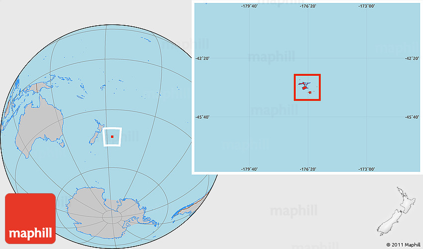 Maphill is a collection of map images. This image combines a gray map with the globe centered on Chatham Islands. Use the buttons under the image to switch to different map types.