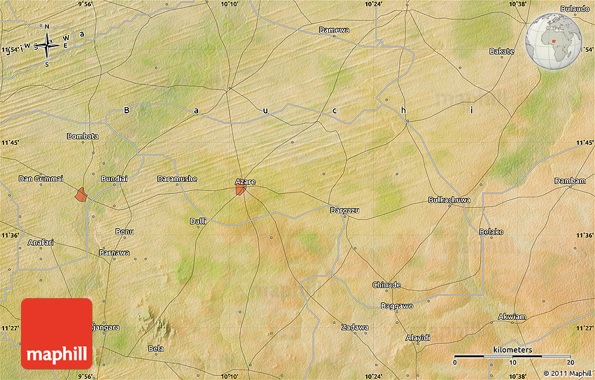 Maphill is a collection of map images. This satellite map of Azare is one of them. Click on the Detailed button under the image to switch to a more detailed map.
