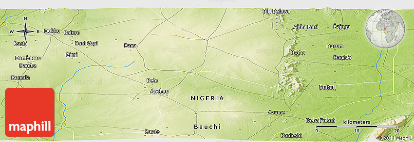 Sure, this physical panoramic map is nice. But there is good chance you will like other map styles even more. Select another style in the above table. See Shinga and Bauchi from a different view.
