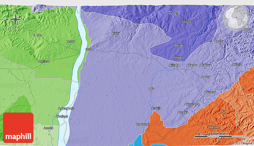 The 3D political map represents one of many map types and styles available. Look at Ukho, EtsakoEa, Edo, Nigeria from different perspectives.