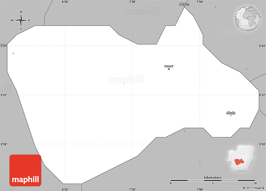 The simple gray outline map represents one of several map types and styles available. Look at Owerri, Imo, Nigeria from different perspectives.