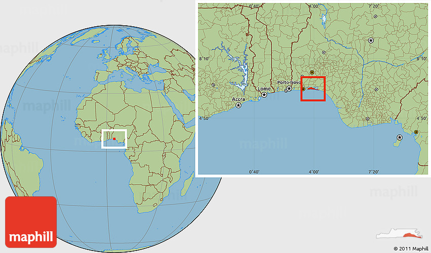 Maphill is a collection of map images. This image combines a savanna style map with the globe centered on Ibeju/Lekki. Use the buttons under the image to switch to different map types.