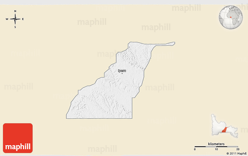 This map uses colors of vintage antique maps. Shagamu is highlighted with white. The rest of the map is beige colored shaded relief map.