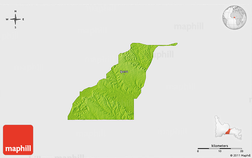 The 3D physical map represents one of several map types and styles available. Look at Shagamu, Ogun, Nigeria from different perspectives.
