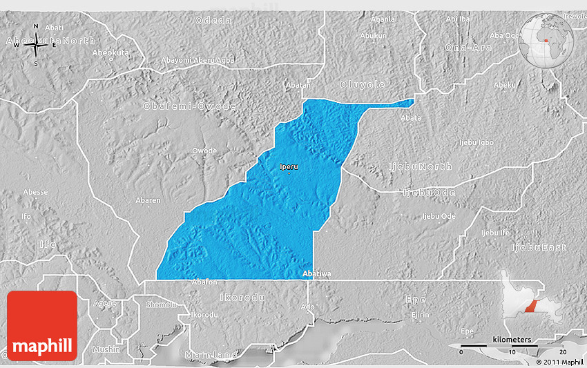 The 3D political map represents one of several map types and styles available. Look at Shagamu, Ogun, Nigeria from different perspectives.