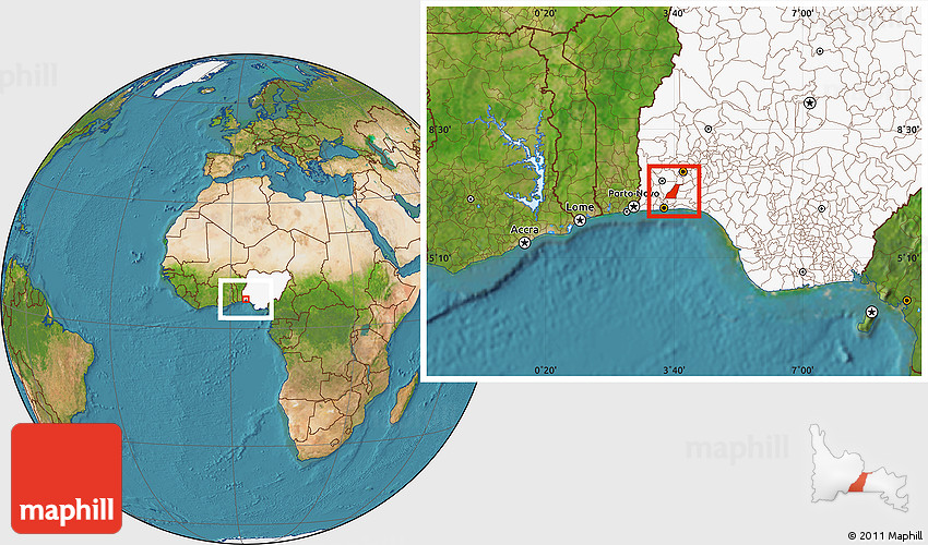 Maphill is a collection of map images. This image combines a satellite map with the globe centered on Shagamu. Use the buttons under the image to switch to different map types.