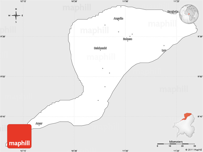 The simple silver style outline map represents one of several map types and styles available. Look at Karim-La, Taraba, Nigeria from different perspectives.