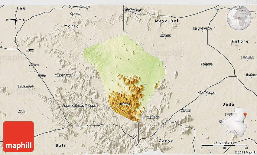 The 3D physical map represents one of several map types and styles available. Look at Zing, Taraba, Nigeria from different perspectives.