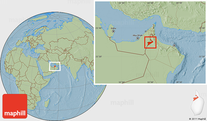 Maphill is a collection of map images. This image combines a savanna style map with the globe centered on Al Buraimi. Use the buttons under the image to switch to different map types.