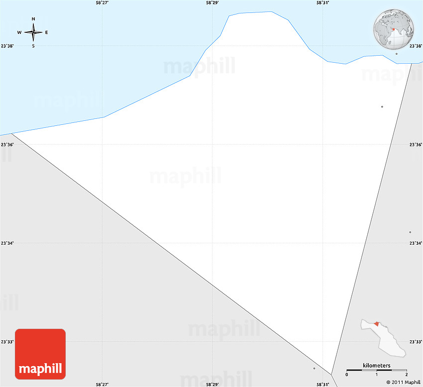 The simple silver style outline map represents one of several map types and styles available. Look at Muttrah, Muscat, Oman from different perspectives.