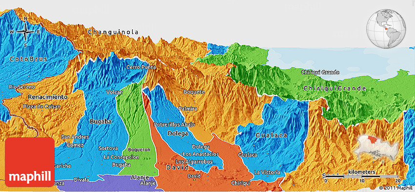The panoramic political map represents one of several map types and styles available. Look at Boquete, Chiriqui, Panama from different perspectives.