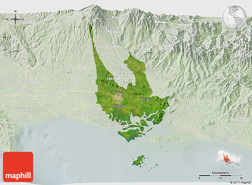 The 3D satellite map represents one of several map types and styles available. Look at David, Chiriqui, Panama from different perspectives.