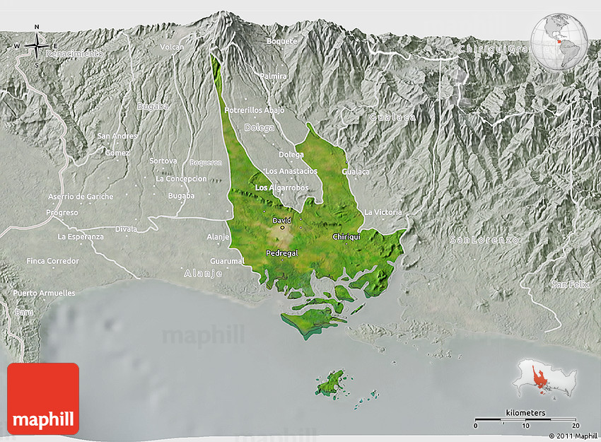 The 3D satellite map represents one of several map types and styles available. Look at David, Chiriqui, Panama from different perspectives.