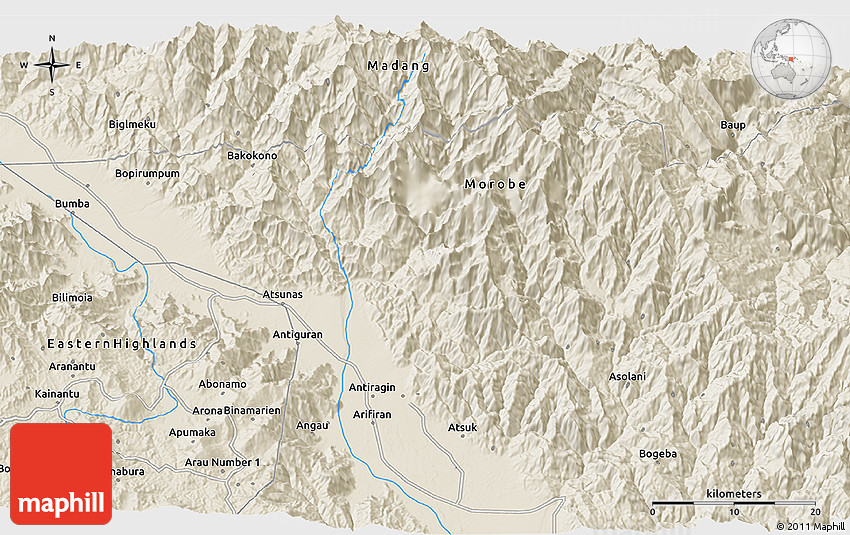 Sure, this shaded relief 3D map is nice. But there is good chance you will like other map styles even more. Select another style in the above table. See Sakam and Morobe from a different view.