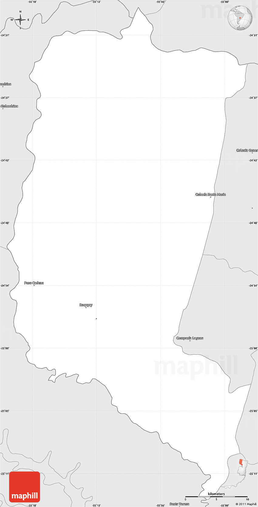 Embed the above silver style simple map of Itakyry into your website. Enrich your blog with quality map graphics. Make the web a more beautiful place.