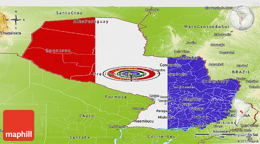 Embed the above flag panoramic map of Paraguay into your website. Enrich your blog with quality map graphics. Make the web a more beautiful place.