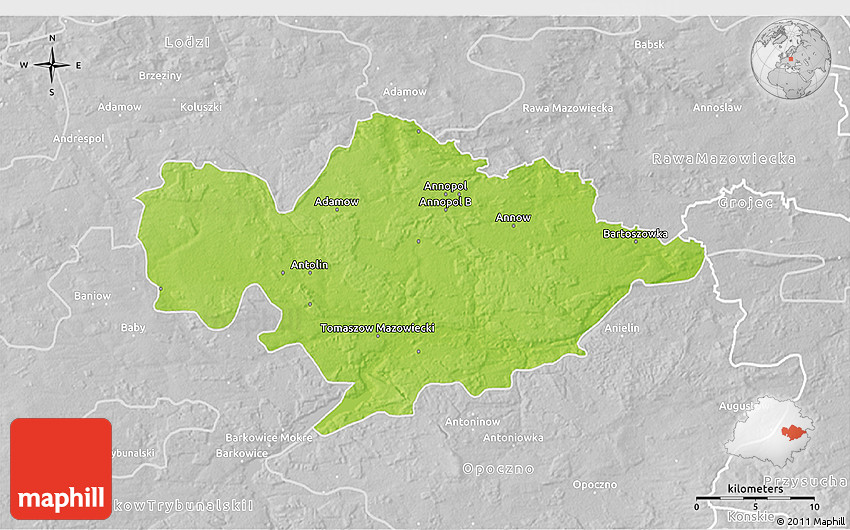 The value of Maphill lies in the possibility to look at the same area from several perspectives. Maphill presents the map of Tomaszow Mazowiecki in a wide variety of map types and styles.