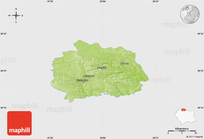 Maphill is a collection of map images. This physical map of Miechow is one of them. Click on the Detailed button under the image to switch to a more detailed map.