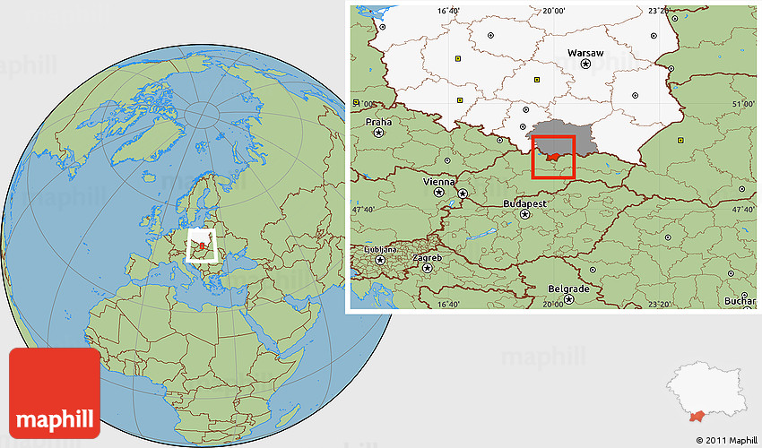 Maphill is a collection of map images. This image combines a savanna style map with the globe centered on Zakopane. Use the buttons under the image to switch to different map types.