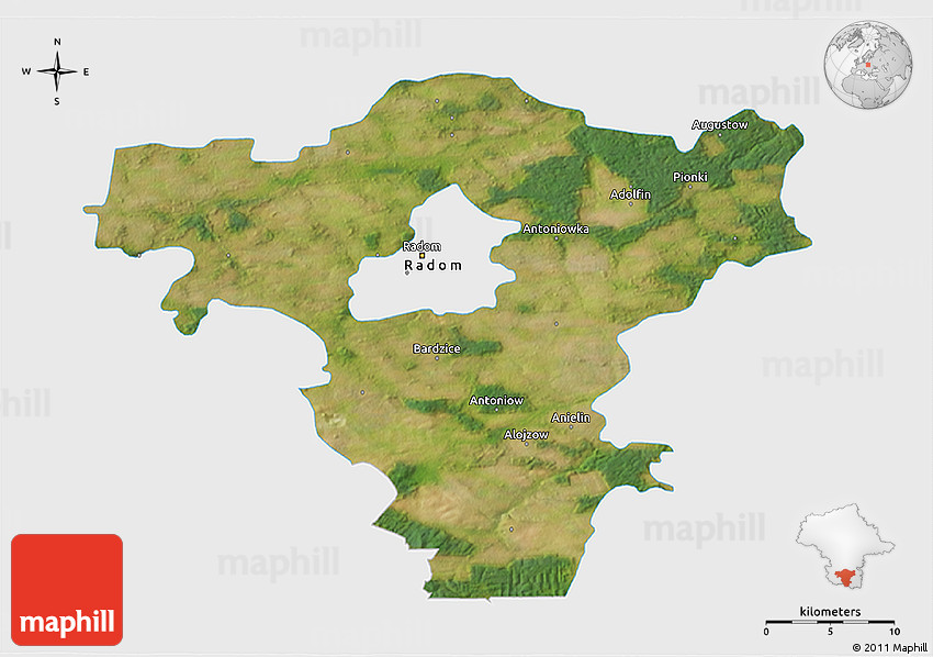 Satellite map shows the Earth's surface as it really looks like. The above map is based on satellite images taken on July 2004. This satellite map of Radom I is meant for illustration purposes only. For more detailed maps based on newer satellite and aerial images switch to a detailed map view.