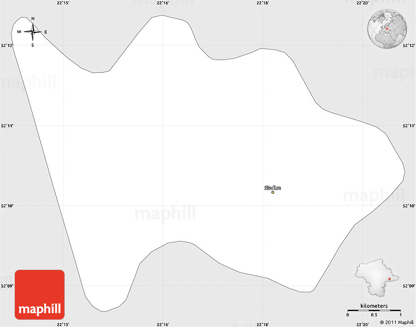 The simple silver style outline map represents one of several map types and styles available. Look at Siedlce, Mazowieckie, Poland from different perspectives.