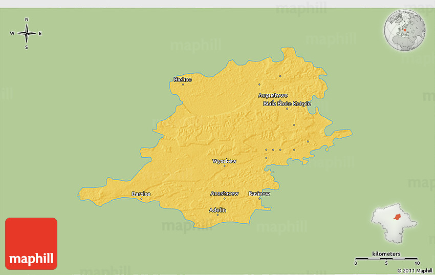What does single color outside mean? This means that all areas outside the borders of Wyszkow are filled with a single solid color. This helps to visually separate the main region from the outside countries and regions.