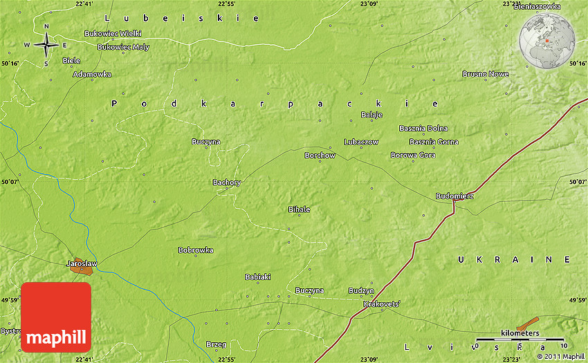 Sure, this physical map is nice. But there is good chance you will like other map styles even more. Select another style in the above table. See Sieniawa and Podkarpackie from a different view.