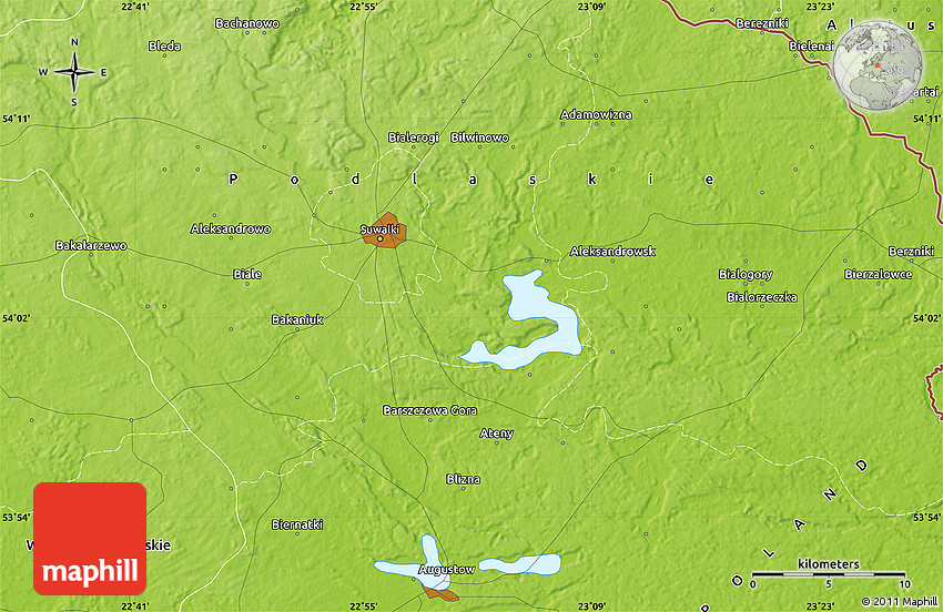Sure, this physical map is nice. But there is good chance you will like other map styles even more. Select another style in the above table. See Granże Nowe and Podlaskie from a different view.