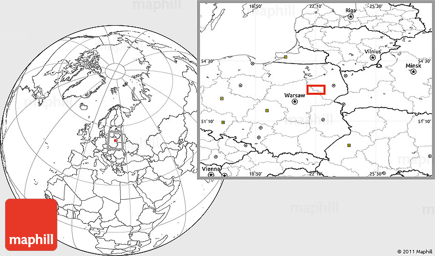 Maphill is a collection of map images. This image combines a blank map with the globe centered on Gośki Pełki. Use the buttons under the image to switch to different map types.