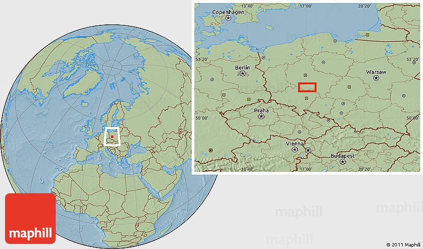 Maphill is a collection of map images. This image combines a savanna style map with the globe centered on Szkaradówko. Use the buttons under the image to switch to different map types.