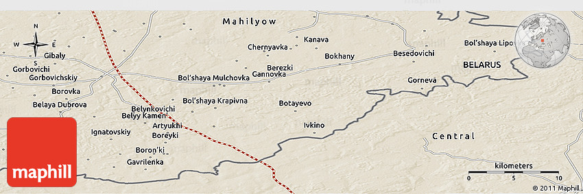 The panoramic shaded relief map represents one of many map types and styles available. Look at Kalininskiy, Mglinskiy, Bryansk Oblast, Central, Russia from different perspectives.