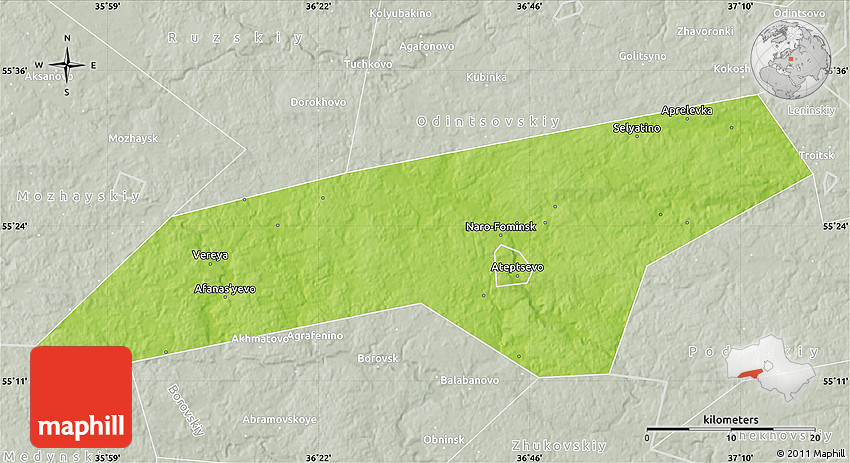 The value of Maphill lies in the possibility to look at the same area from several perspectives. Maphill presents the map of Naro-Fominskiy in a wide variety of map types and styles.