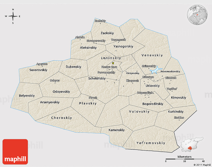 Each map style has its advantages. No map type is the best. The best is that Maphill lets you look at Tula Oblast from many different perspectives.